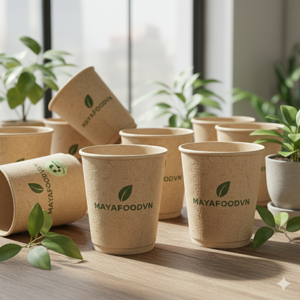 Ly giấy thân thiện môi trường làm từ giấy kraft tái chế, thiết kế tối giản với logo MAYAFOODVN