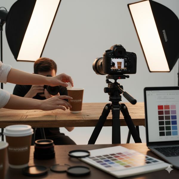 Cảnh hậu trường marketing sản phẩm ly giấy MAYAFOODVN – truyền thông thương hiệu qua bao bì