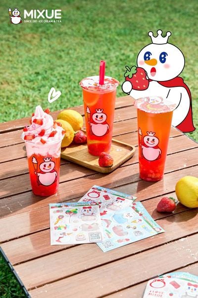 Điều đặc biệt ở Mixue là dù định vị ở phân khúc bình dân, thương hiệu này vẫn giữ được sự dễ thương, nhất quán và chỉn chu trong hình ảnh. Từ màu sắc chủ đạo đỏ trắng, đến linh vật ông tuyết Mixue, từ ly nhựa, túi giấy cho đến đồng phục nhân viên – tất cả đều tuân thủ một hệ thống nhận diện thống nhất.