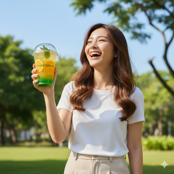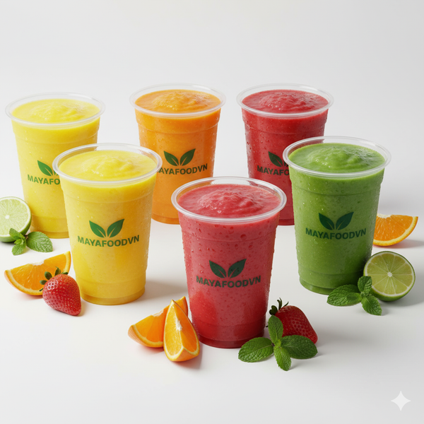 Sinh tố và nước ép tươi là dòng sản phẩm đậm đặc, thường có kết cấu đặc hoặc nhiều đá, nên yêu cầu dung tích lớn hơn để đảm bảo đầy đủ khẩu phần. Ly 350ml là mức tối thiểu thường thấy trong các cửa hàng phục vụ sinh tố nguyên chất hoặc smoothie bowl. Tuy nhiên, để tạo cảm giác “đã khát”, hầu hết thương hiệu đều sử dụng ly 500ml – 700ml như một tiêu chuẩn.
